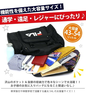 商品名FILA フィラ キッズバッグ サブバッグ デカリュック でかリュック 軽い 子供用バックパック キッズサイズ ジュニアサイズ 送料無料 黒 ブラック ネイビー 野外活動 遠征 ハーネス ベルト 大きめ チェストベルト フロントベルト フロントストラップ おしゃれな 拡張 ファスナー デイリーユース タウンユース トラベル 中学生 小学生 レジャー カジュアルこの商品について合宿や修学旅行の際に大活躍の人気の大容量サブリュックにNEWモデルが登場!!両サイドのファスナーを開ければ横幅が広がり容量約54Lと、着替えや大判タオル・水筒や雨具など・・・とにかくたくさん入る安心のたっぷりサイズ!外側には多彩なポケットが搭載されており、無くしやすい小物やすぐに取り出したい物の収納に役立ち、遅れを取らずスムーズに行動が出来ます。